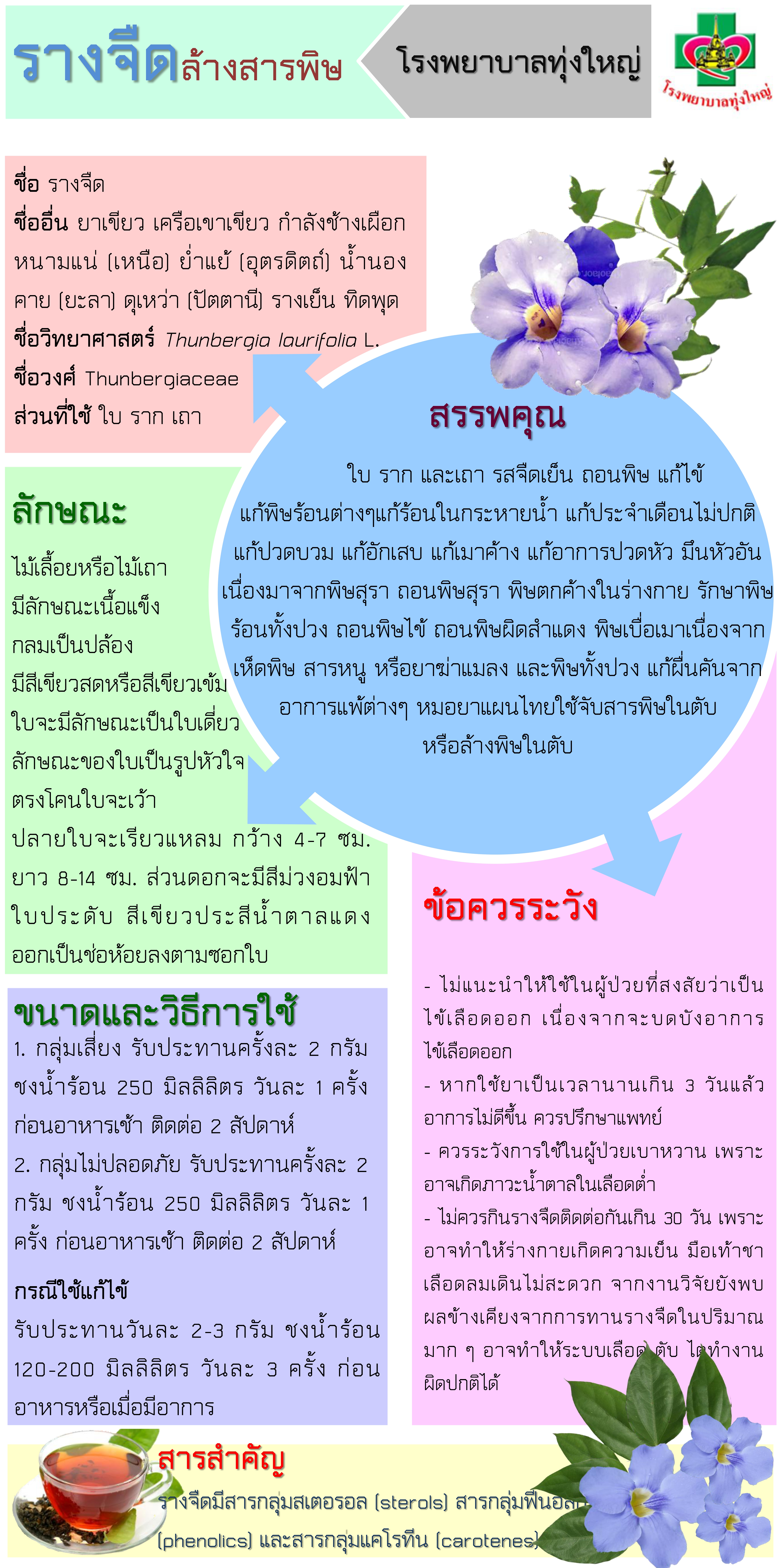 มีการวิจัยเรื่องใบรางจืดสามารถปกป้องตับ ซึ่งเป็นอวัยวะที่กำจัดสารพิษในร่างกาย ซึ่งเป็นกลไกหนึ่งที่ช่วยรักษาชีวิตของผู้ที่ได้รับสารพิษ